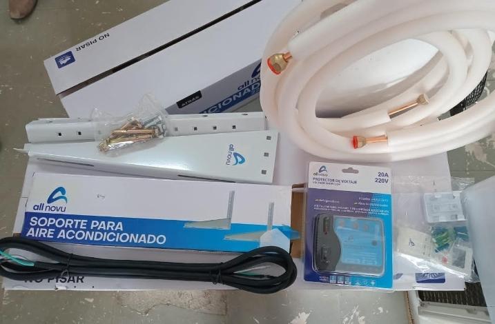 Incluye Kit de Montaje, Protector de Voltaje, Mando A Distancia, Soporte Para Unidad Exterior, Tornillos Expansionadores, Mangueras, Tubería de Cobre, Soporte de Goma para evitar las Vibraciones.