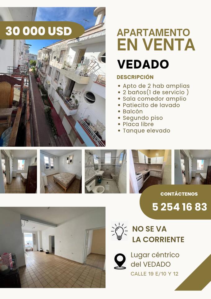Se vende apto en Vedado. Lugar céntrico - $30,000