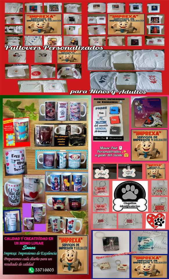 Igualmente tenemos Artículos Personalizados (Jarras de cerámica; Llaveros y Mouse Pad) Todo con el diseño de su preferencia Será un placer atenderle y