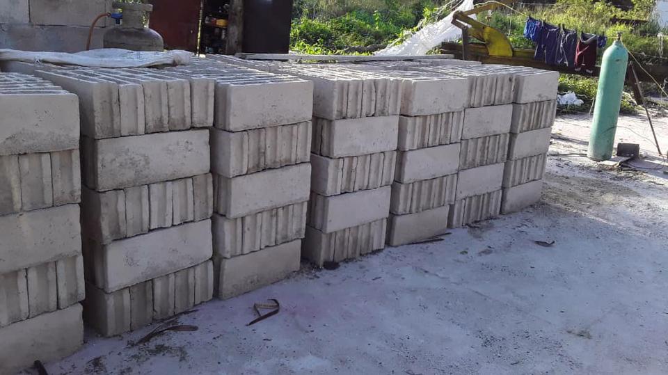 Arena , polvo de piedra, gravilla, tercio, azulejos, tanques de agua, cemento cola, cemento a granel, cemento blanco , recorteria de lajas y jaimanitas, acero, ladrillos, bloques, entre otras cosas