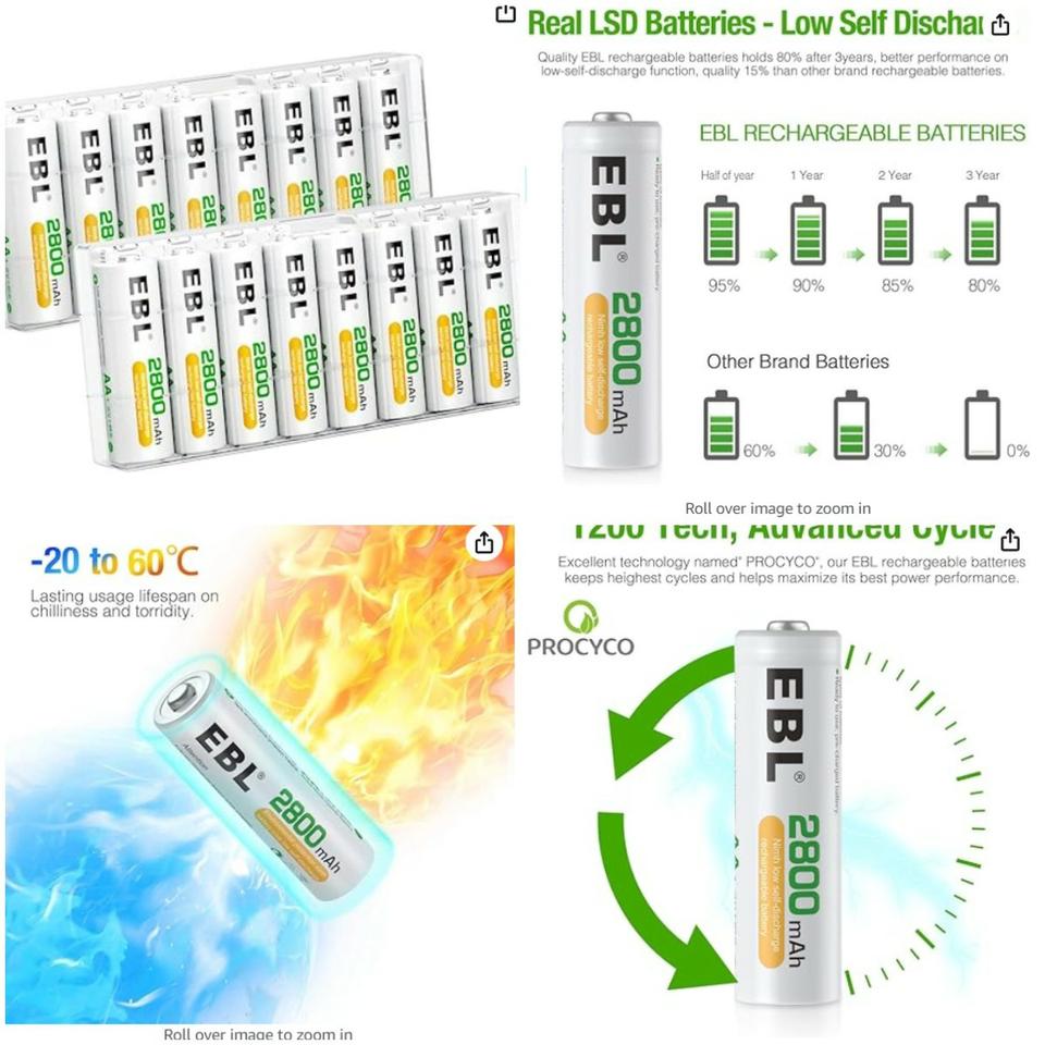 Pilas Recargables AA 2800 mah EBL (2 Unidades) 10 usd